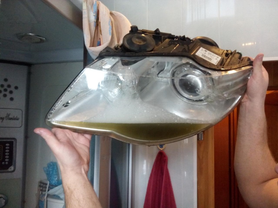 Началось все с того, что одна фара стала тускнеть. Купил новые лампочки и решил (черт меня дернул) помыть фары, так как линзы мутные, да и одна фара была внутри в пыли. Снял все лампочки, снял блок управлением фары, а вот блок ксенона, сЦука не снял подумал что они герметичны и не чего им не будет, так как мою изнутри. Мыл шампунем для бескантакной мойки для керхера, потом промывал много раз водой, потом пролил дистиллированной водой (чтоб не было разводов). Грязи было очень много, когда стал сушить все таки решил снять блоки ксенона (согласен идиот надо было сразу ) все просушил, линзы стали очень чистые, как новые. Собрал все и пошёл ставить фары. И иии не горят, поворотники работают, габариты горят, поворотный свет горит только пока не загорится ошибка на пенале по ближнему свету. Сразу подумал что блоки ксенона залил, снимаю и на 2е суток на батарею. Но увы света как не было, так и нет.