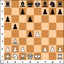 1. e4 e5 2. Kf3 Kc6 3. Cb5 a6 4. Ca4 d6 5. d4 b5 6. Cb3 K:d4 7. K:d4 ed