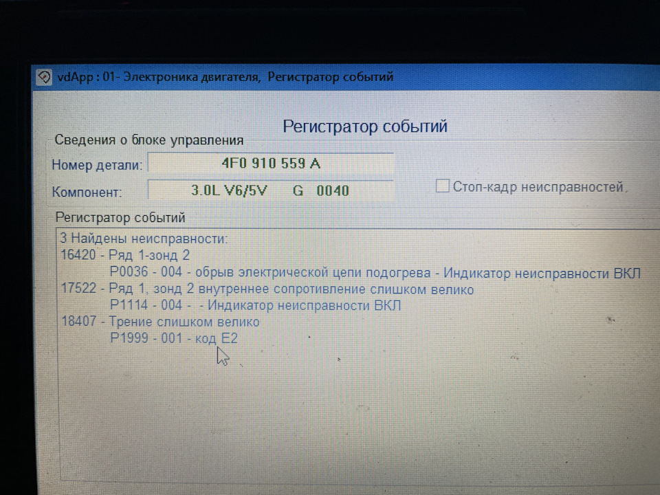 Проблема ушла, мотор стал работать ровно, ни одного пропуска нет больше но… появилась ошибка: Р1999 код трения Е2