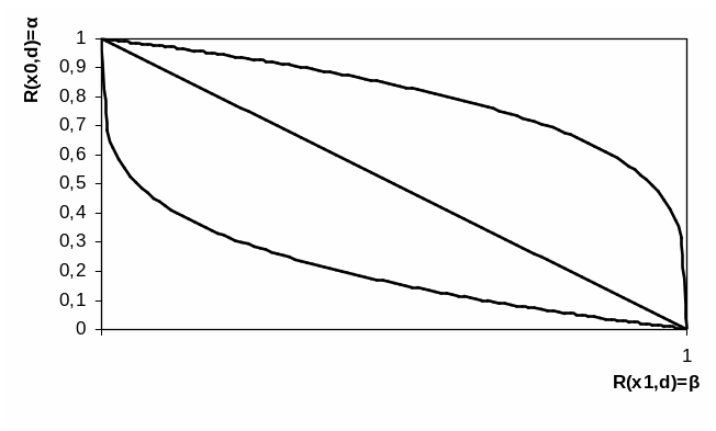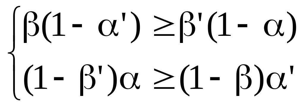 Из определения выше видно, что ошибки первого и второго рода являются взаимно-симметричными, то есть если поменять местами гипотезы и