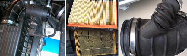 - Воздушный фильтр. Несвоевременная замена фильтра воздуха привела к его критическому засорению, в результате чего проход воздух через него проблематичен. , он же MAF sensor. Очень сильно влияет на смесь, поэтому при сильной загрязненности наверняка может быть причиной хотя и обогащение топливной смеси (ошибка p0172) тоже случается при выходе из строя датчика кислорода. /утечка воздуха на всем протяжении впускного тракта. Обязательно проверяем на наличие подсосов под дроссельной заслонкой, впускным коллектором, за датчиком расхода воздуха и датчиком абсолютного давления, также осматриваем коллектор на наличие трещин.