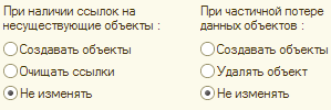 ● Настройки второй группы определяют, что будет делать система при наличии ссылок на несуществующие объекты и при частичной потере данных в существующих объектах.