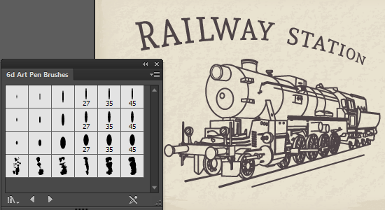 А вот всевозможными кистями пользуются очень часто. В самом Adobe Illustrator их превиликое множество. Но из-за наличия активных кистей в векторном файле вашу иллюстрацию не примут на сток. Их тоже нужно разбирать через Object > Expand Appearance.