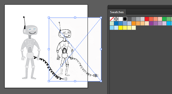 Трансформирование включает вращение, отражение, масштабирование и наклон объектов. Объекты можно преобразовывать с помощью палитры «Трансформирование», команд «Объект» > «Трансформировать» и специальных инструментов. Также можно осуществлять множество вариантов преобразования путем перетаскивания ограничительной рамки для выбора.