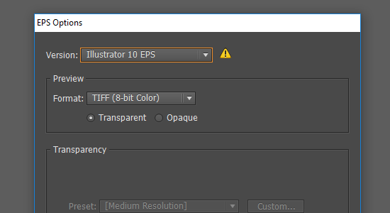 Начнём с сохранения векторного файла. Когда вы сохраняете родной Ai формат Illustrator, то это, в принципе, правильно. Но только в качестве исходника для себя. Для микростоков нужно сохранять EPS. Делается это через меню File > Save as. Выберите версию 10 или 8. Имейте ввиду, что прозрачности (Transparency) и режимы наложения (Blending Mode) поддерживаются только в 10 версии. У кого не получается вникнуть в предыдущее предложение, не заморачивайтесь, просто сохраняйте EPS-10 в любом из случаев.