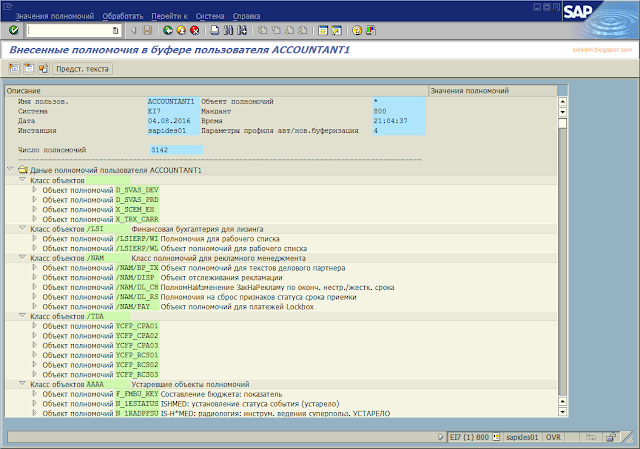 Стоит отметить, что все полномочия в SAP системе выделются через объекты полномочий, у которых есть поля и присвоенные им значения. Для удобства поиска и выбора все объекты полномочий объединены в классы.