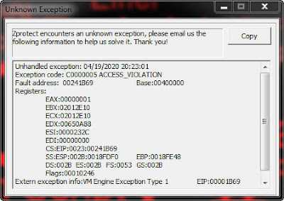 Extern exception info:VM Engine Exception Type 1 EIP:00001B69